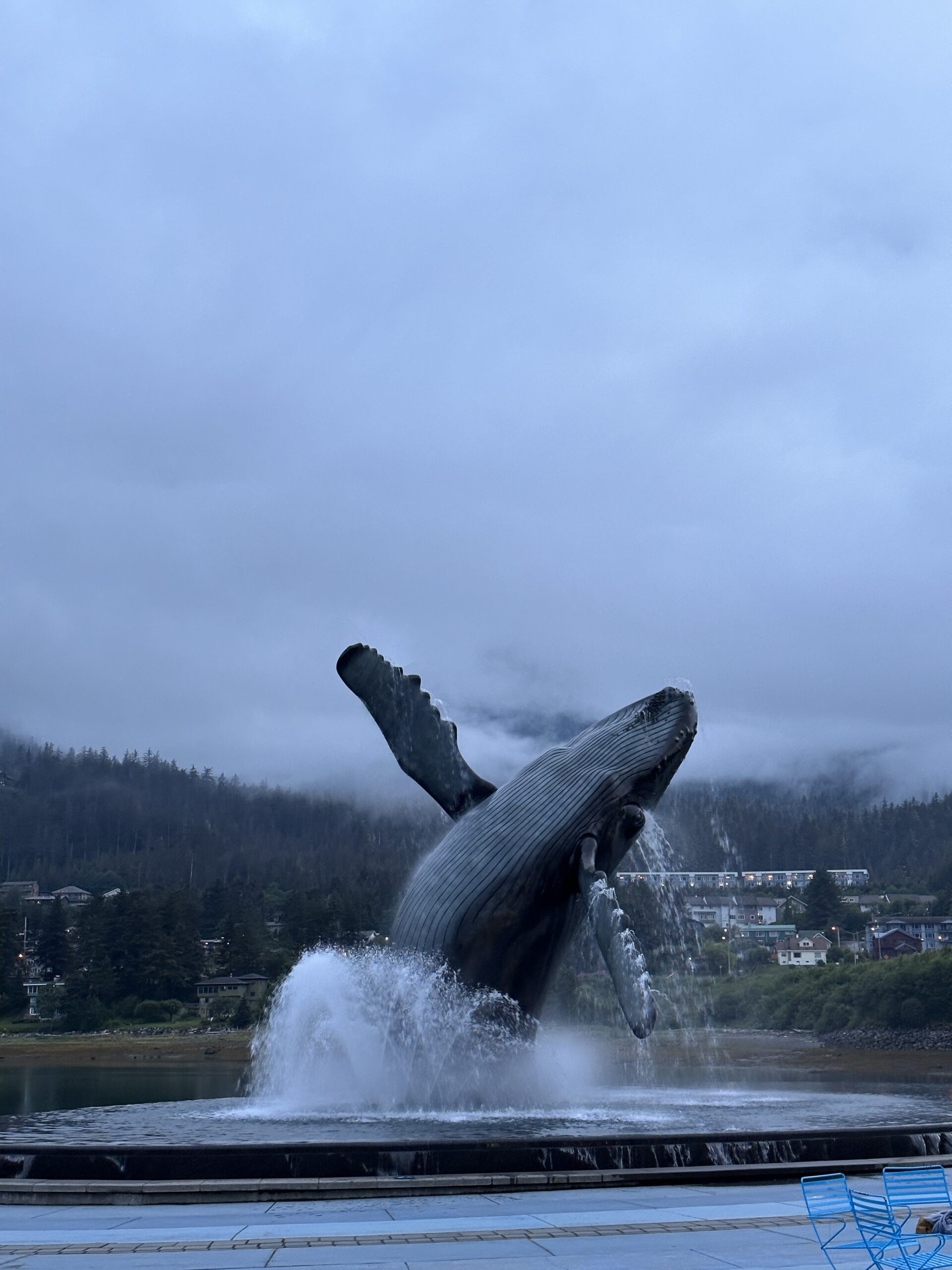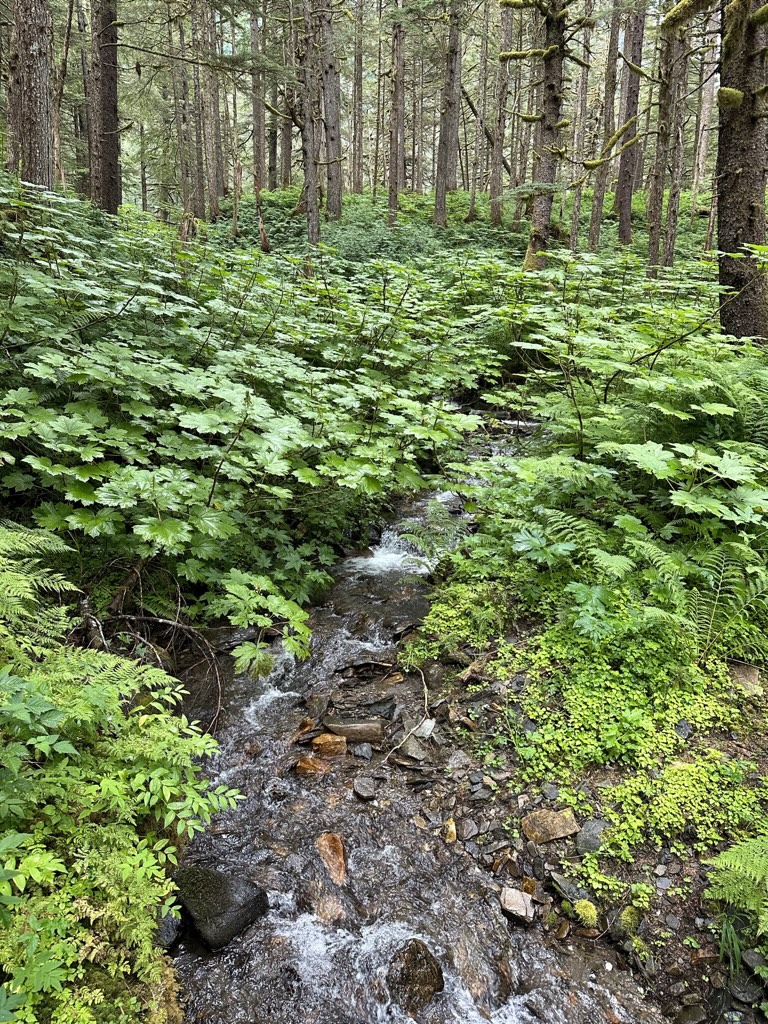Dinner that night at Squirez Bar in Auke Bay. Then we headed out down the road a bit and had a campfire out on the beach. Aside from the clutch combo of Aperol Spritzes and S’mores, we witnessed something I’m not sure I ever thought I’d see: a salmon run! I guess it’s common knowledge that salmon are born in (freshwater) streams, live their lives in the (saltwater) ocean, and then return to the (freshwater) streams to spawn (and die ☠️). But it’s pretty wild to see it.