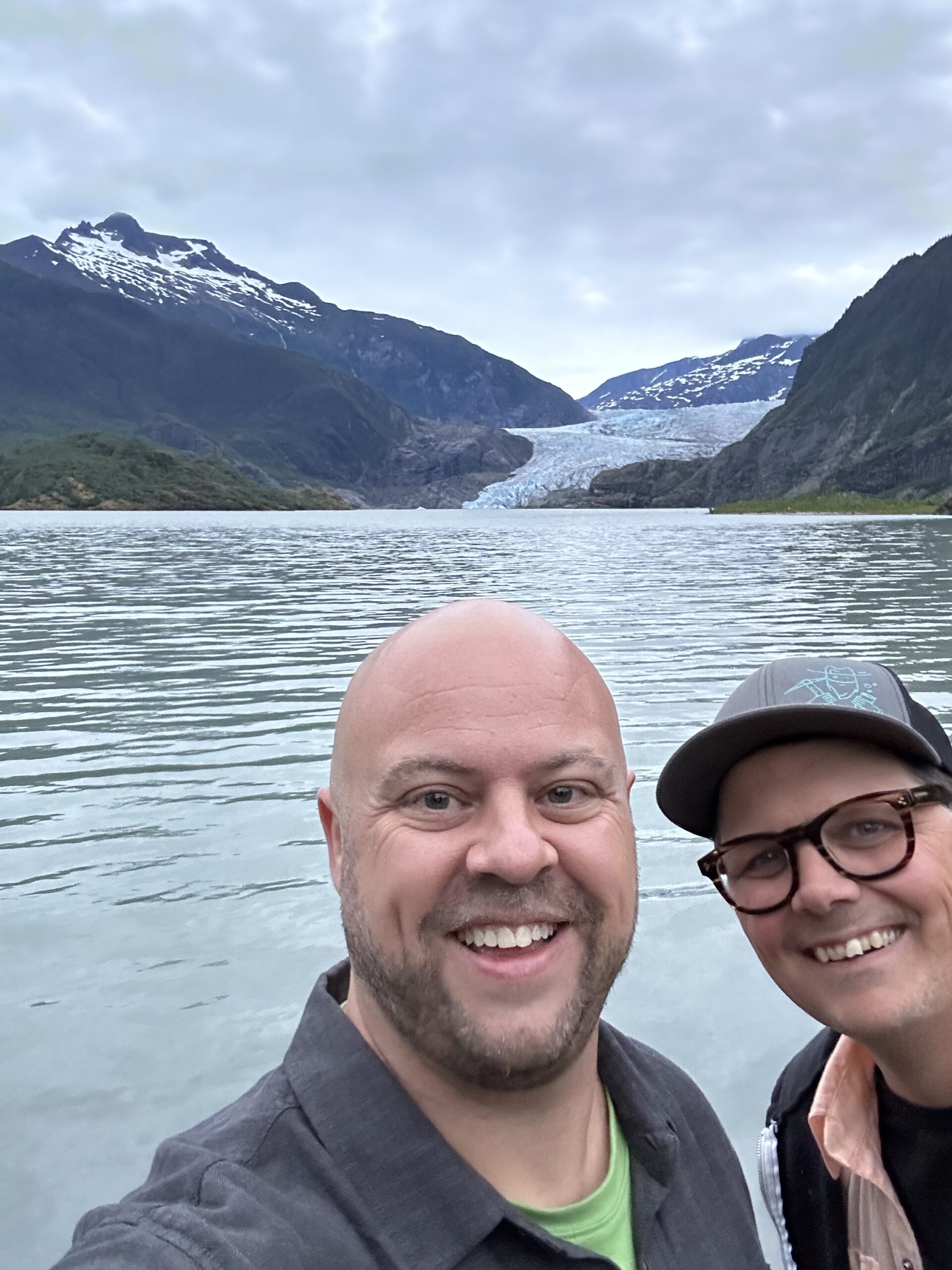 We drove straight over to the Mendenhall Glacier from the airport. Justin (and his partner Brooke) live over in the Back Loop of the Mendenhall Valley area now, which is a stone’s throw from the glacier. It’s just cool to look at, and hitting this area at this time meant no tour buses. It’s only about a 30-minute drive from where the cruise ships dock to the glacier, so it’s a popular excursion.
