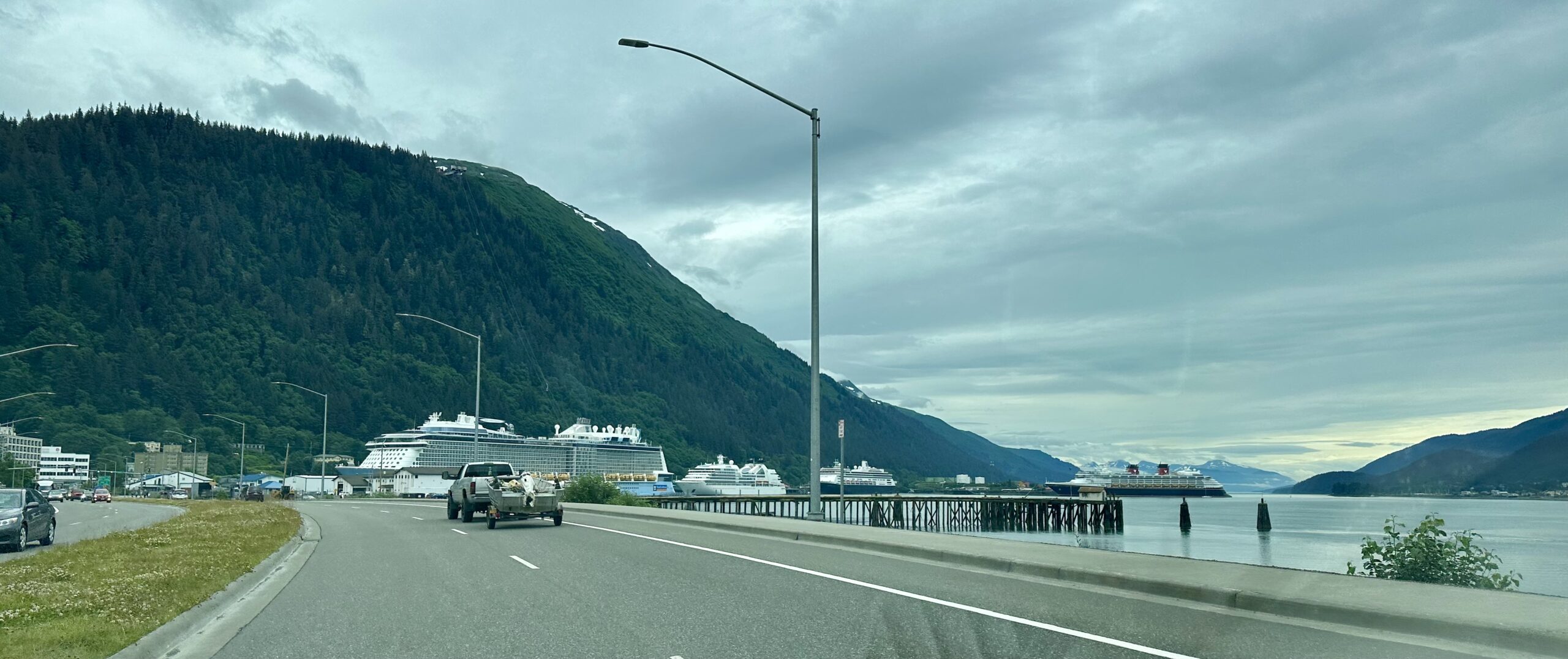 I’m sure the locals have mixed feelings about all the cruise ships. Surely the money is good for the town, but the piles of dopey tourists waddling off the boats and standing in the middle of the street are annoying at best. The population of Juneau is some 30,000, but 1.2 million visitors arrive via cruise ships each year in an ever-stretching season (April to October this year). There tend to be about 5 ships at a time there. I saw the Ovation of the Seas there, for example (cruise ships tend to have dedicated Wikipedia pages, I’ve learned), which is nearly 5,000 people on just one ship.