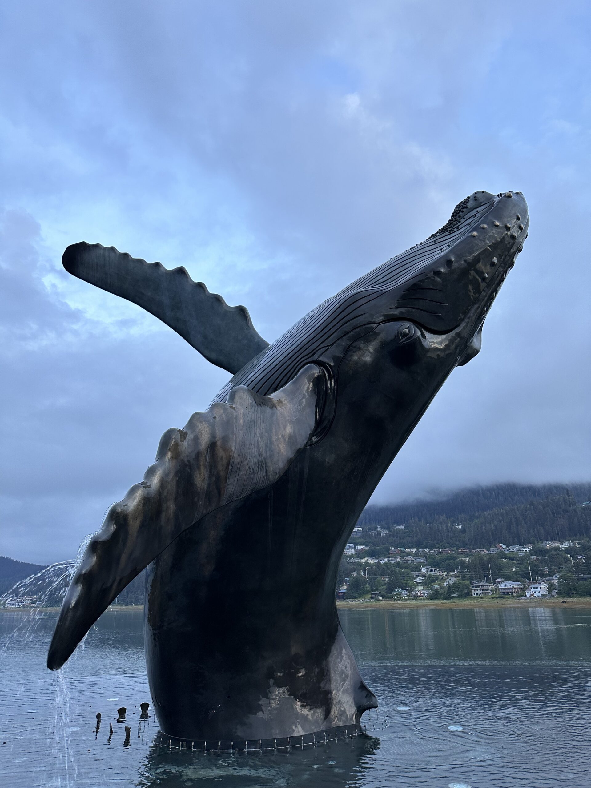 We popped into The Alaskan for another beer and noted there was a band playing there later in the evening (turns out that was enough for us: we went back later that night). First, we went back home and cleaned up, hit the Island Pub on Douglas for some very solid pizza, grabbed a drink at Louie’s (and cracked some pull tabs), and then headed back downtown. We stopped at the big Humpback statue on the way because that seemed mandatory: