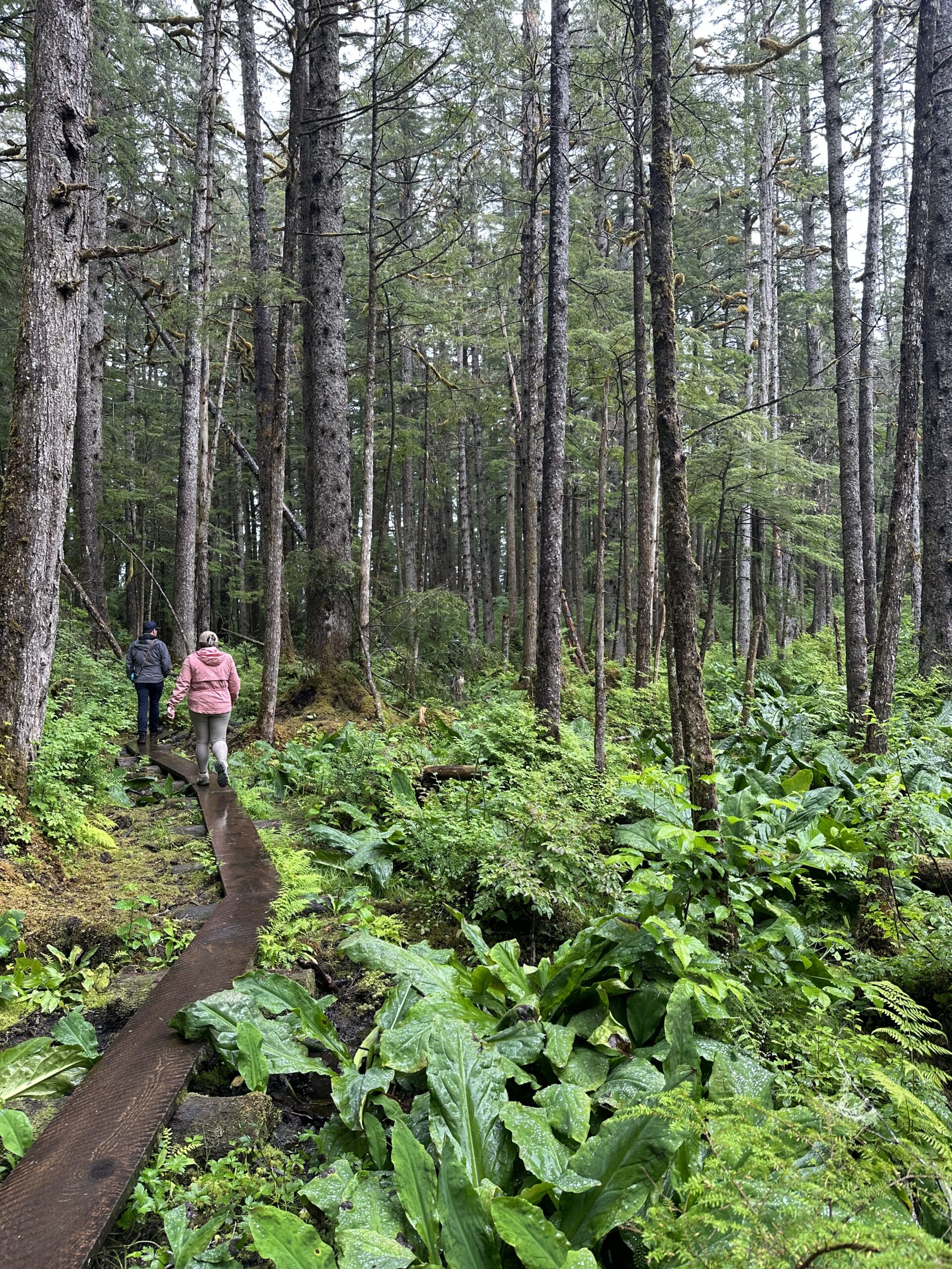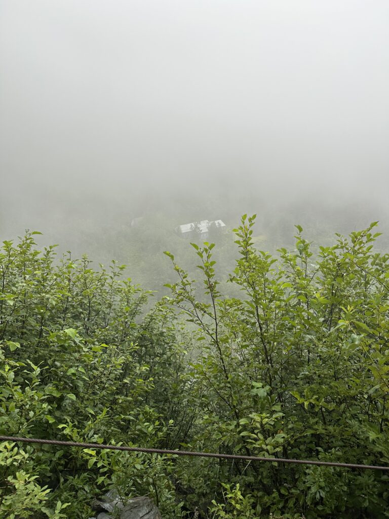 We were still downtown so we decided we’d take the opportunity to hike up Mount Roberts, one of the mountains that frames the city. You can take a tram right up it, but we walked it instead. It was foggy and rainy, but that gave everything a cozy atmospheric vibe that was nice, even if it did neuter what surely would have been epic views.