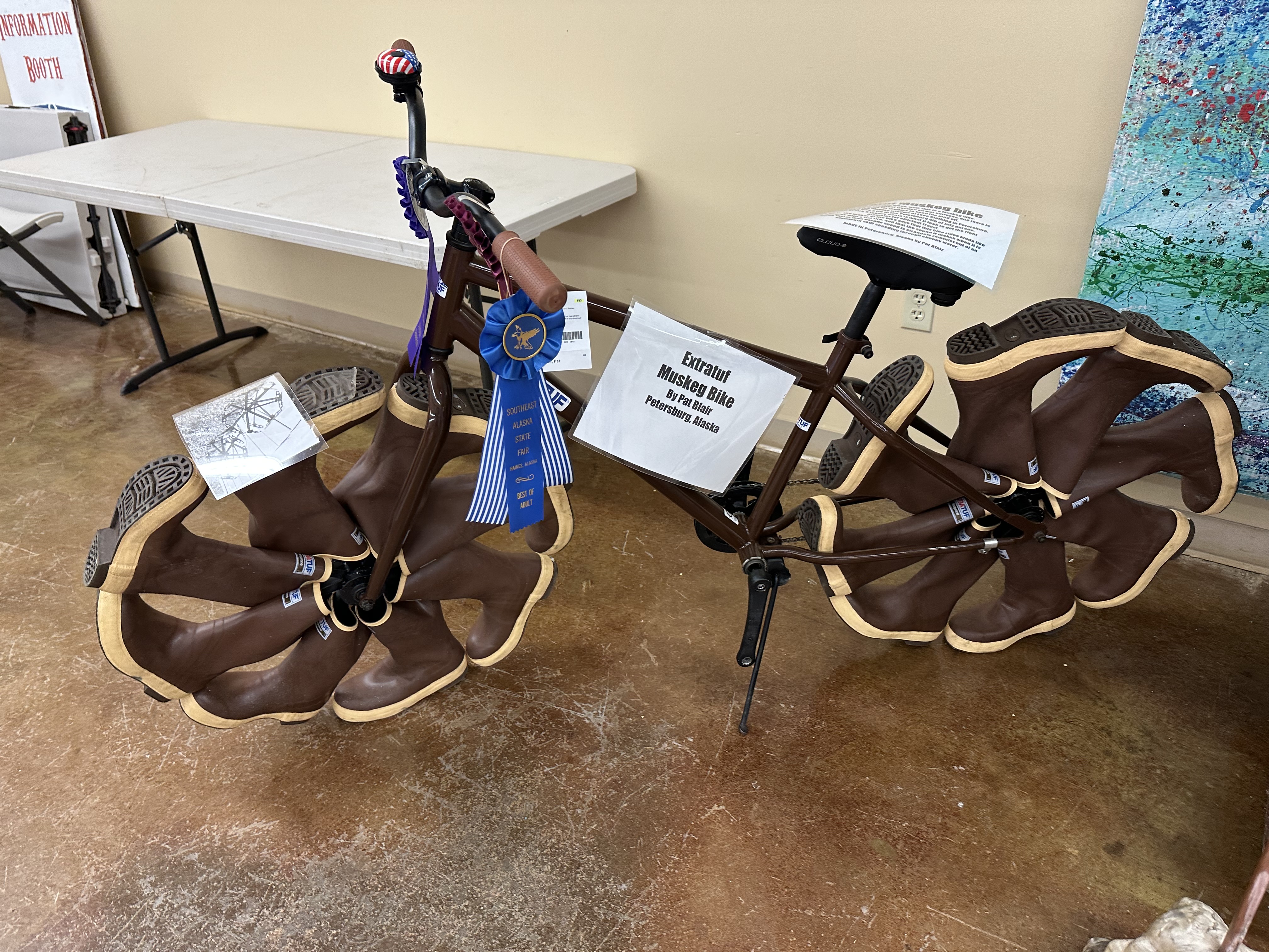 Here’s something you should probably know about Alaska: everybody has the same boots. They are called XTRATUFF and they are brown with tan soles. Here. So I really enjoyed this prizing-winning bit of art from the fair: