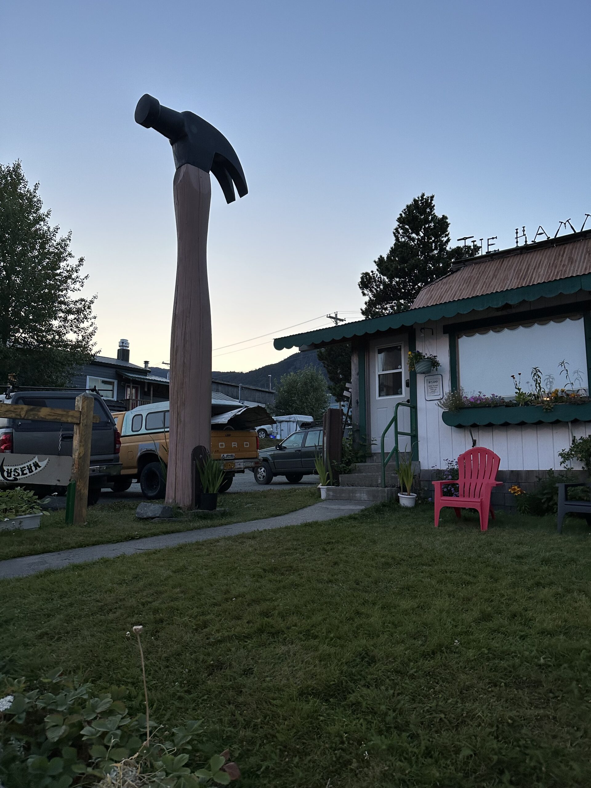 The night before, while doing a little web surfing about the camping situation in Haines, we got spooked we might not find something, so Justin was able to last-minute book a room at Captain’s Choice Motel. From the road, the faded yellow sign and busted-up parking lot make it seem like we’re in for a pretty gnarly room situation, but I was dead wrong! It was very nice! The view was incredible, and our room was very clean, cozy, and well put-together. I’d stay there again anytime.