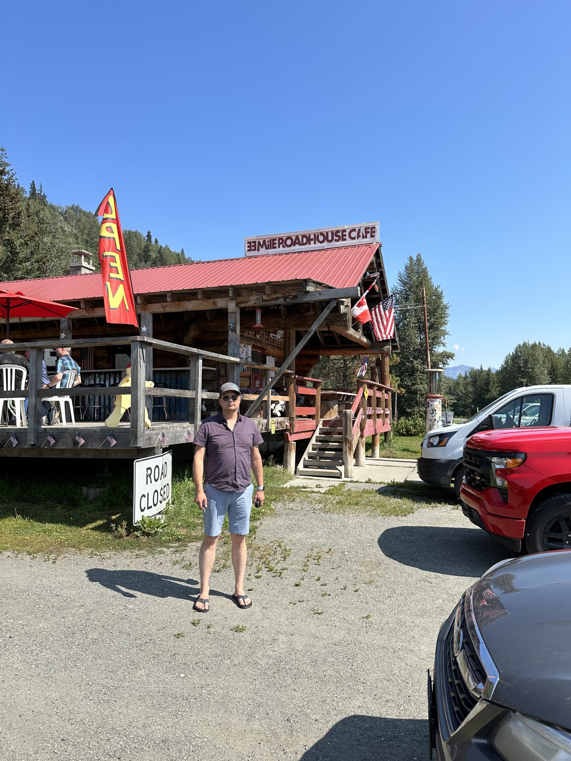 Then we cruised up the highway on the other side of the penisula out to the 33 Mile Roadhouse. You’ll never guess how many miles away it is. Just kind of an iconic place, I take it. Haines is actually connect via roads to the rest of Alaska (unlike Juneau), so if people were arriving for the fair via car, they’d come through here. Thus, it was busy! They clear only had one server, which is probably more than enough most days, but they were too busy to take us and we had to boogie.