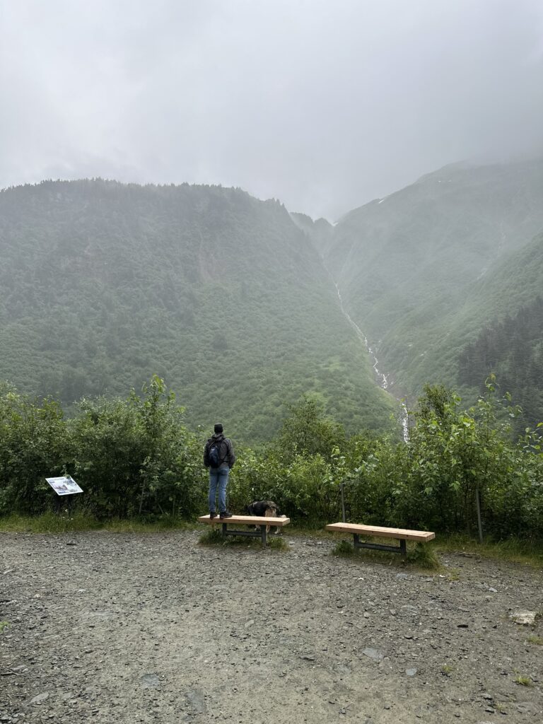 We brought Justin’s dog Georgie with us. Apparently, Georgie has been acting up a little (not listening) a bit more since moving back to Alaska, so Justin took the opportunity to stop at Petco on the way out and buy some dog treats to do obedience training with. Every time Georgie got too far, we’d stop and get her to come back promising a treat, which mostly worked.