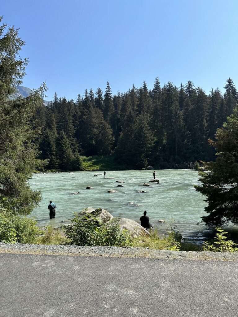 Since we had the car, we took the opportunity to drive up the Chilkoot River and Recreation Area. We’d seen bears there in years past and were hoping to again, but no luck. It’s fun seeing a bear from a moving metal cage. The area is also lousy with fisherman, there to catch the same thing the bears are: salmon.